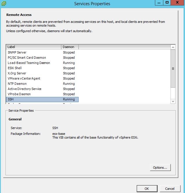 روش دیگر فعال سازی SSH از طریق VSPhere Client است . در VSphere Client از تب Configuration ، Security Profile را انتخاب می کنیم.سپس وارد منوی Propeities شده و وضعیت SSH را بروری Runing قرار می دهیم.