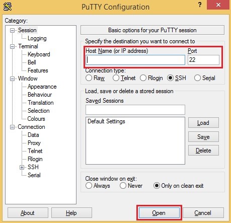 پس از فعال سازی SSH با استفاده از یک Secure Shell Client مانند PuTTY به صورت ریموت به VMware ESXI ، Login می نماییم. پس از نصب PuTTY و اجرای آن ، مطابق تصویر زیر IP سرور ESXI را وارد نموده و پورت را برابر ۲۲ قرار می دهیم (پورت اتصال از طریق SSH ، ۲۲ است.) و بر روی Open کلیک می کنیم.