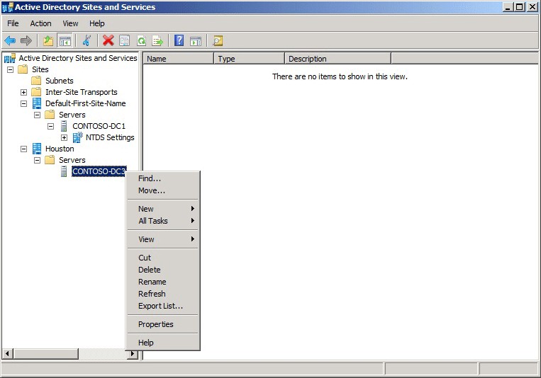 در پنجره run دستور services.msc را زده و به کنسول شوید. با توجه به عکس زیر شما سایت های مختلف را مشاهده میکنید. به سایتی که میخواهید Delete کنید وارد شوید و ابتدا NSTD setting را پاک کرده و سپس server آن مجموعه را پاک کنید و در انتها سرور را ری استارت Restart کنید و بعد از تست دستور Dcdiag /test:ridmanager /v مشاهده می کنید که مشکل مربوطه برطرف شده است. حال میتوانید سرورهای Additional را مجدد به مجموعه اضافه کنید.